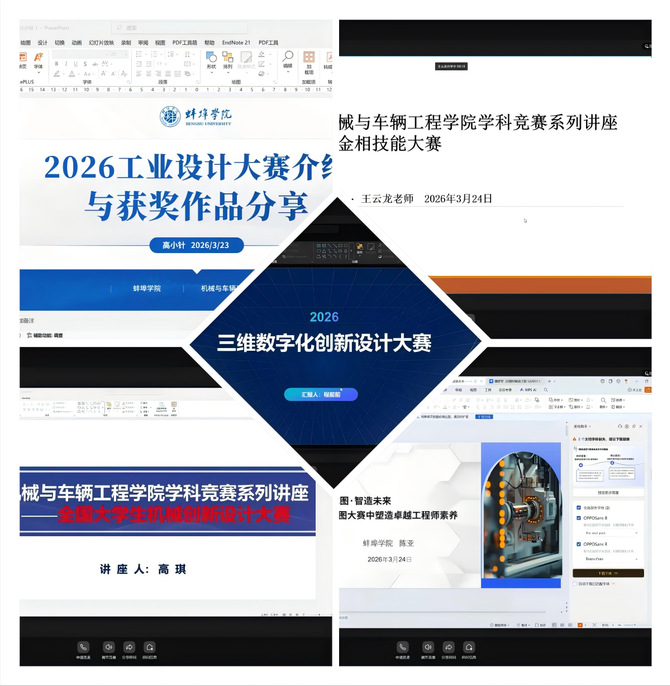 为进一步提升学生学科竞赛能力,夯实专业基础,助力学生在各类学科竞赛中脱颖而出,3月23日起,机械与车辆工程学院精心组织开展为期五天的学科竞赛备赛培训周活动。本次培训采用线上形式,覆盖全体大一大二学生,围绕五大核心学科竞赛,全方位、多角度为学生提供备赛指导,为学生搭建起“以赛促学、以赛促练”的成长平台。